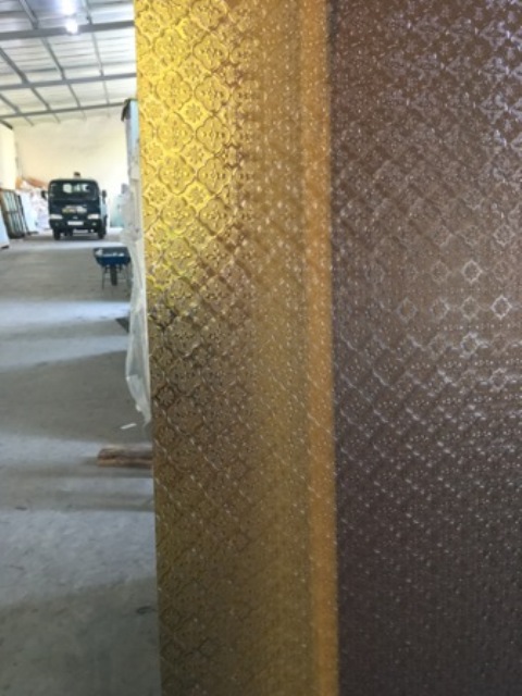 kính hải đường có mầu nâu kèm gam màu vàng tạo nên rất huyền ảo . kính được nhập khẩu nên chất lượng rất tốt vượt chội hơn hẳn hàng sản suất trong nước. khi cắt bẻ không bị giòn vỡ .